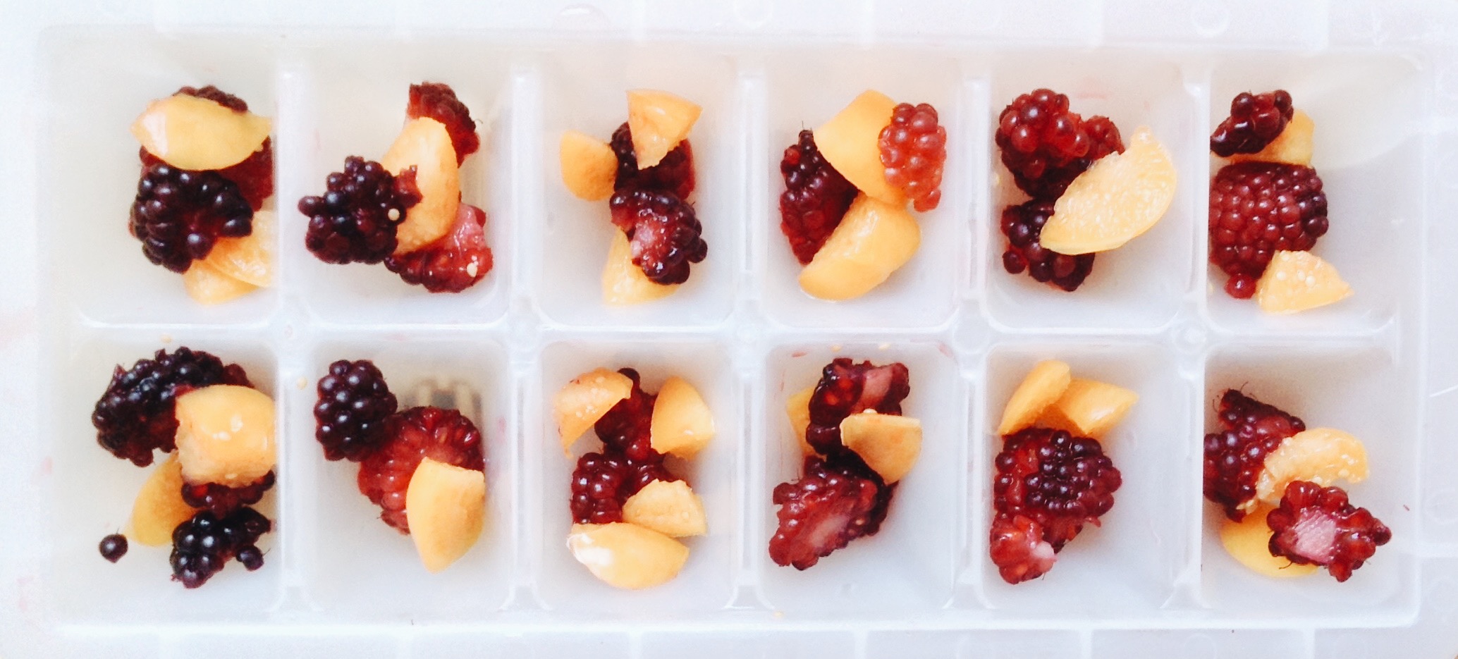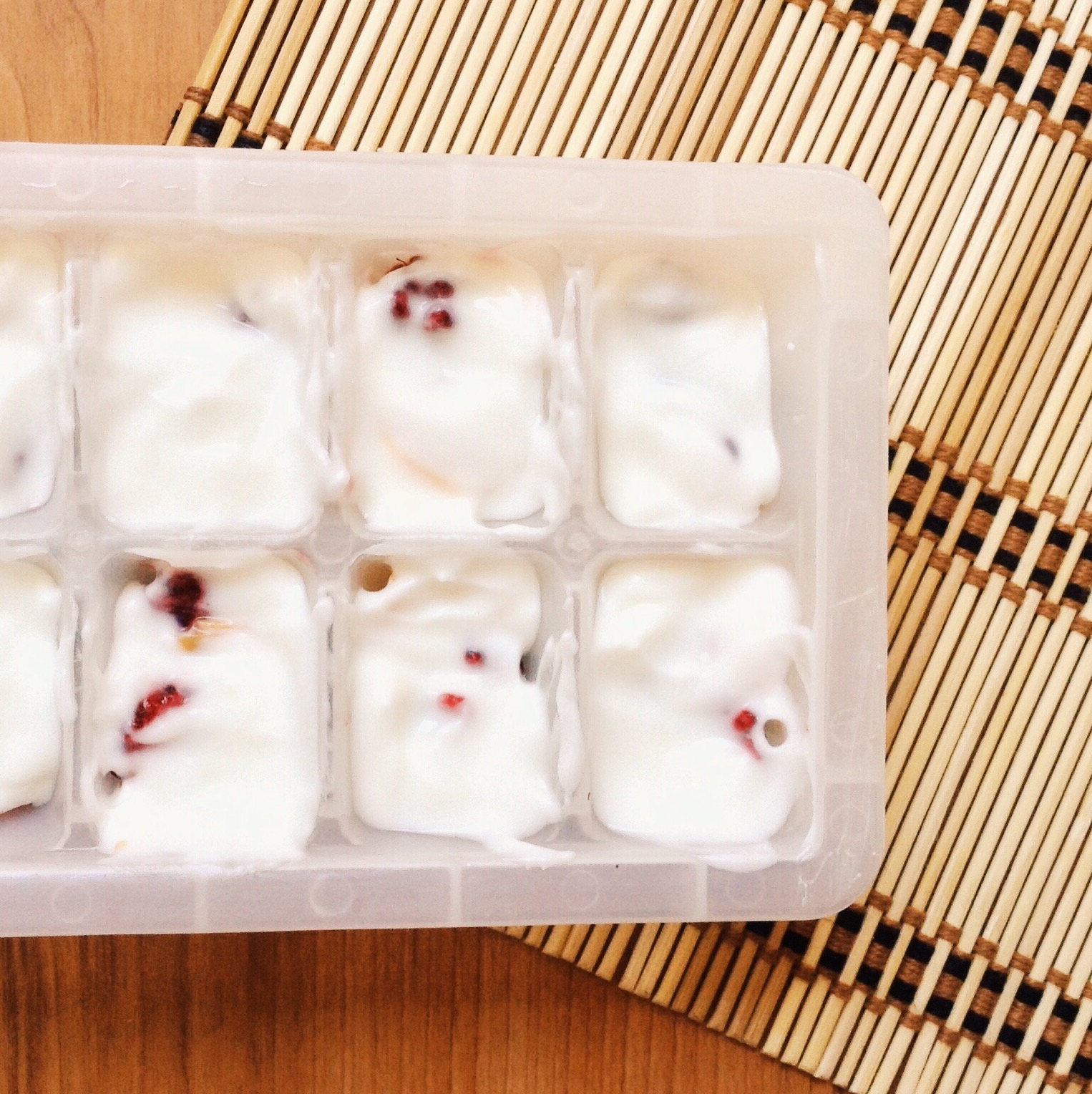 Se corta la fruta en pedazos pequeños y se pone en los cuadritos de la cubeta de hielo. Se cubre con el yogurt griego hasta que quede al tope. Se pone en el congelador por unas 4 horas y listo, a comer.